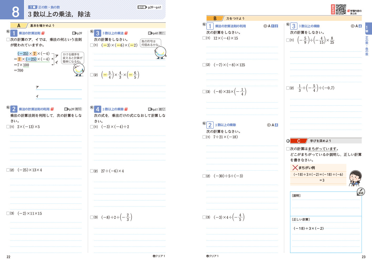 - New 各学年約70問、計約200問を追加。本誌掲載の問題として、従来の「章末総合テスト」に加え、「基本問題でふり返ろう」の問題も収録しました。