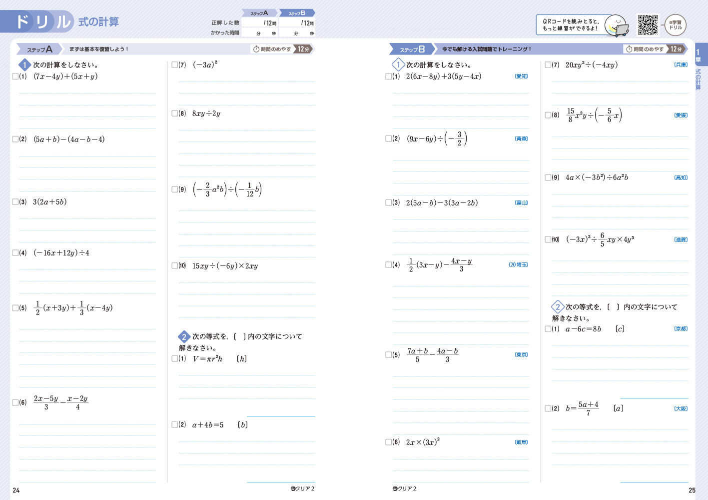 - 特集ページ 「入試問題で実力アップ!」(数と式・関数・データの活用領域)の問題に対応しています。