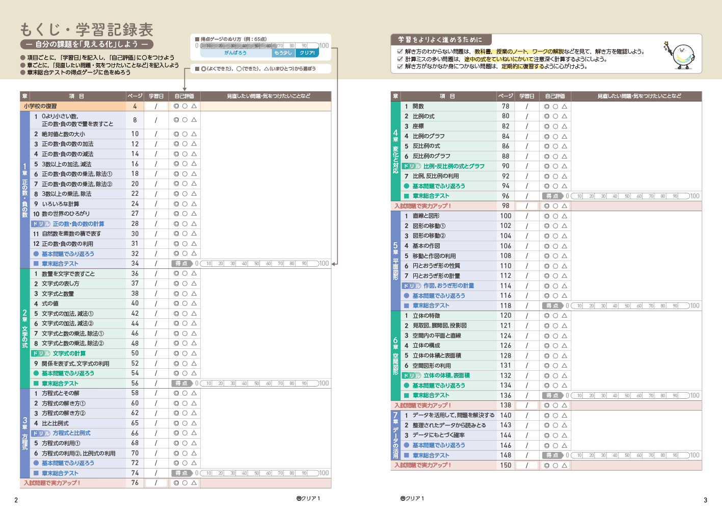 - 「学習記録表」(巻頭)