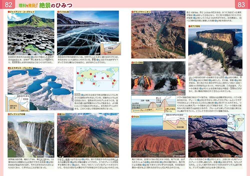 極限環境の生物(p.60)、★遺伝子(p.72)、恐竜(p.80)、★防災(p.126)、宇宙の歴史(p.142)、★感染症(p.162)、熱(p.204)