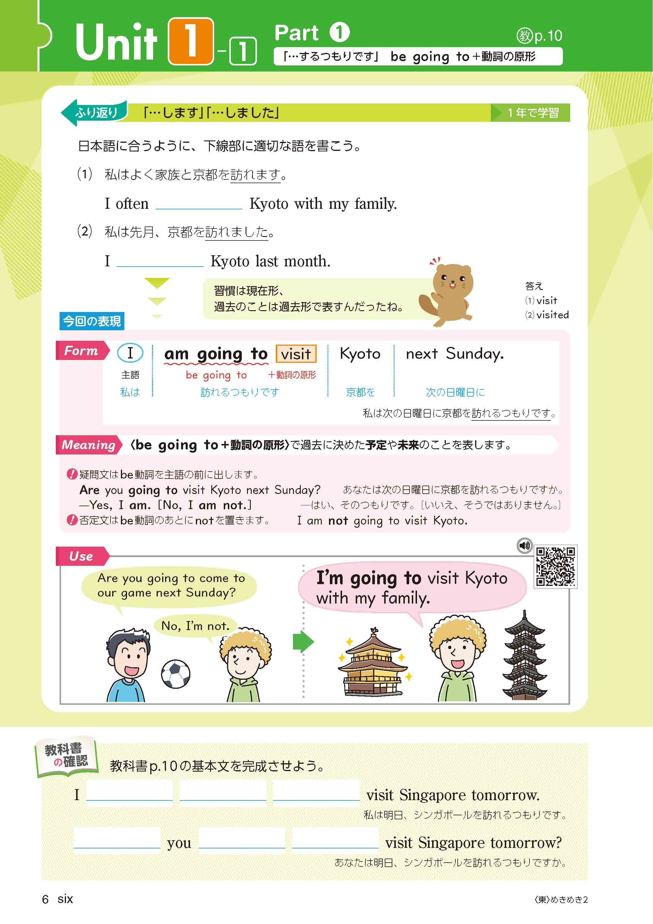 - 既習の関連文法をふり返り、新出基本文の理解へつなげます。