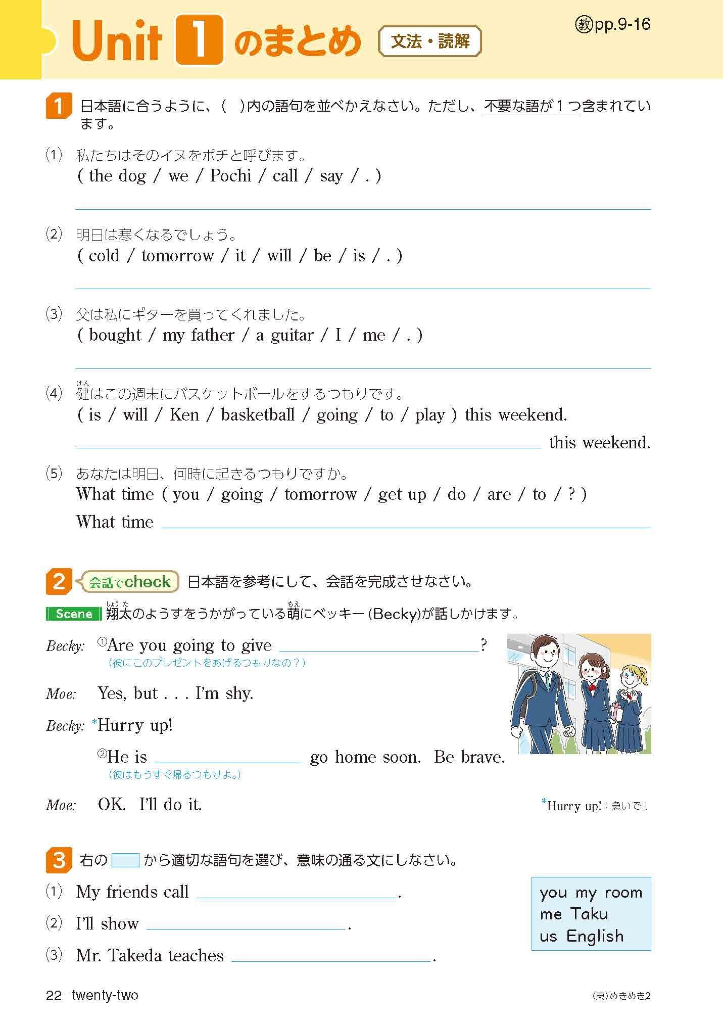 基本ページ③ 場面がわかる対話文問題と和文英訳問題
