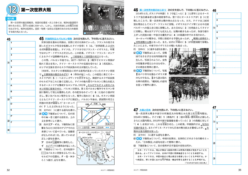 - 世界史・日本史を関連付ける問題も