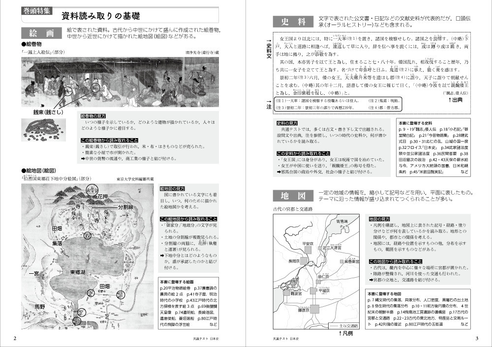 定番資料を大きく掲載し,過去の共通テスト・センター試験で問われた事項を踏まえて,読み取り方を説明します。
