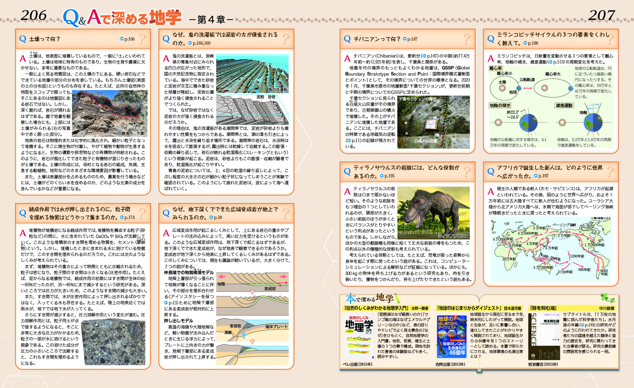 他にも,JPCZ(p.109)/宇宙の終わり(p.164)/土壌って何?(p.208)など,地学への関心を高める話題が豊富です。