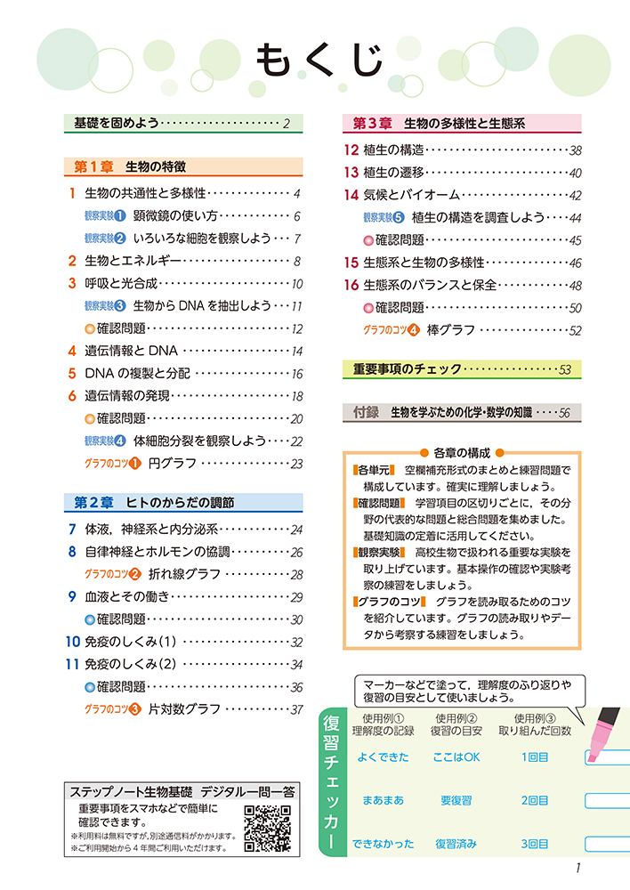- [巻頭] 基礎を固めよう 一問一答形式で 中学理科(生物分野)の内容を復習できます。