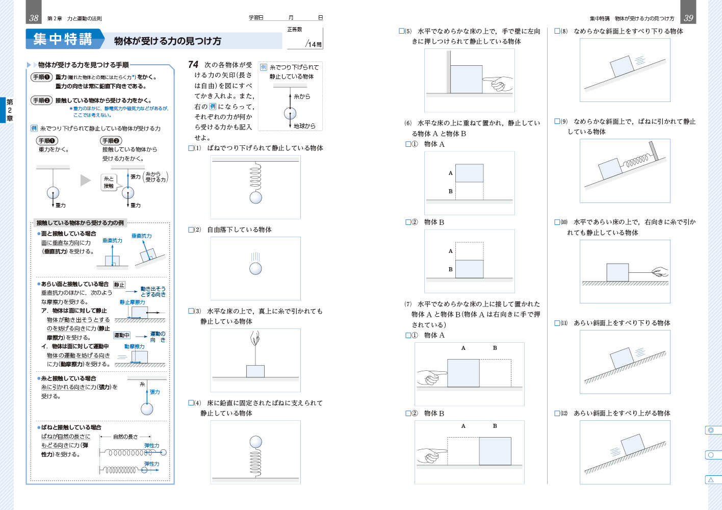 - NEW 理解度チェッカー…各見開き右下に理解度(◎,○,△)の記録欄を掲載しています。復習したいページがすぐに見つかります。