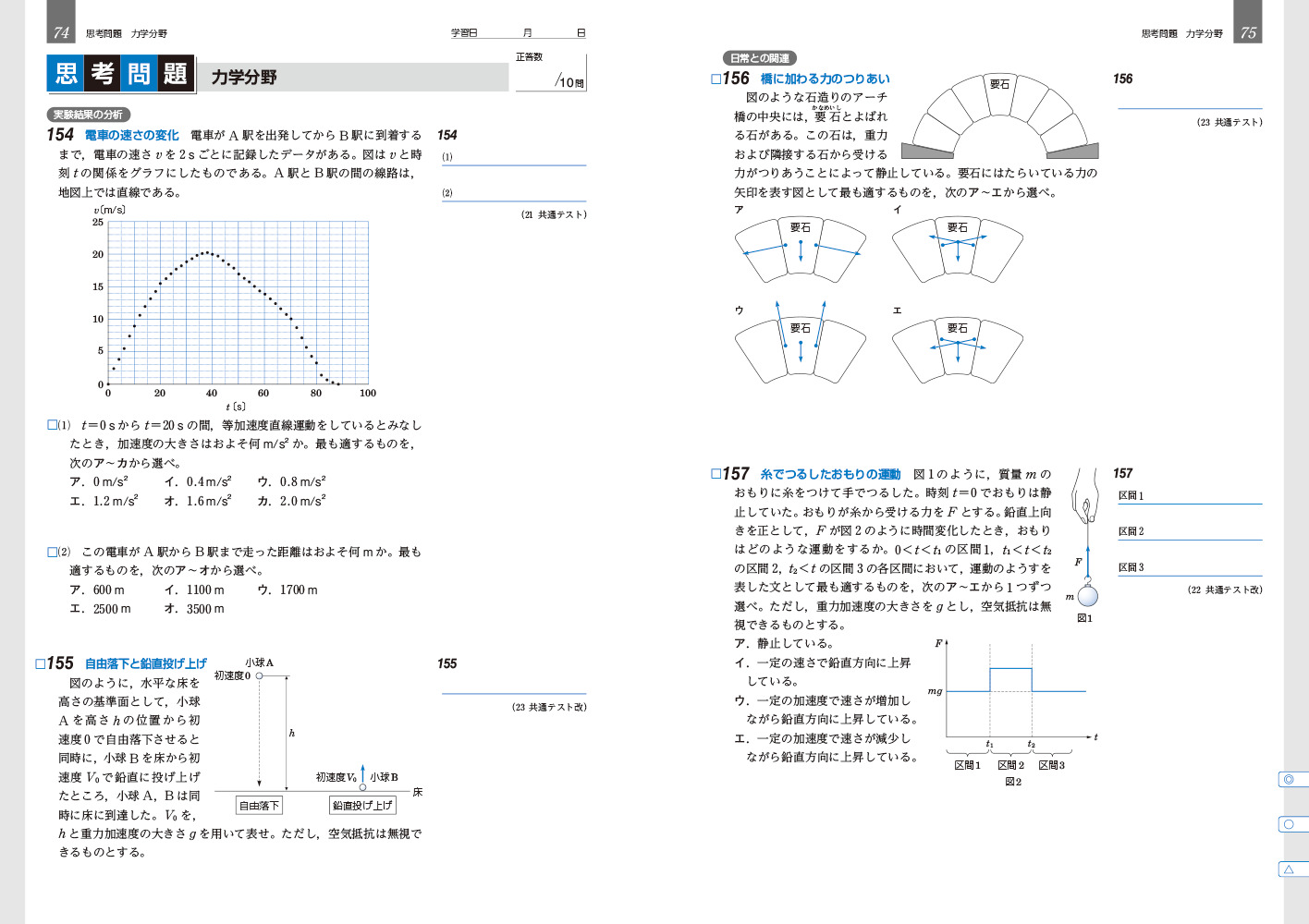 - 掲載テーマ:等加速度直線運動の式,物体が受ける力の見つけ方,力学的エネルギー,y-tグラフのかき方,抵抗の接続