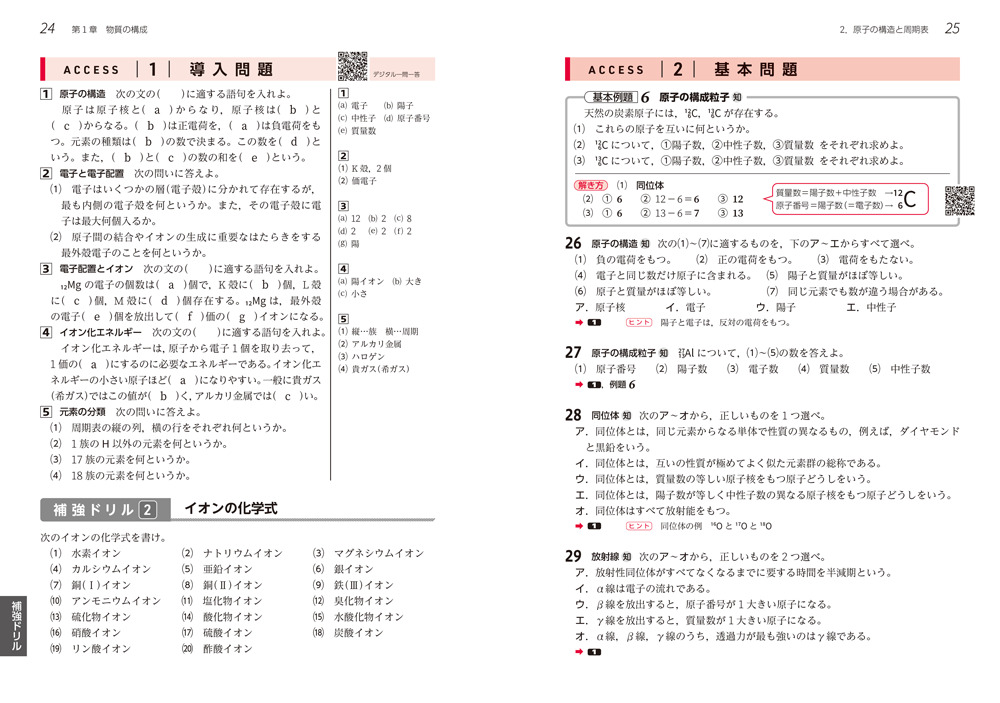 - 補強ドリル 反復練習が効果的なテーマで構成(指数計算,化学式,物質量,化学反応式など)。基礎力の定着 に役立ちます。