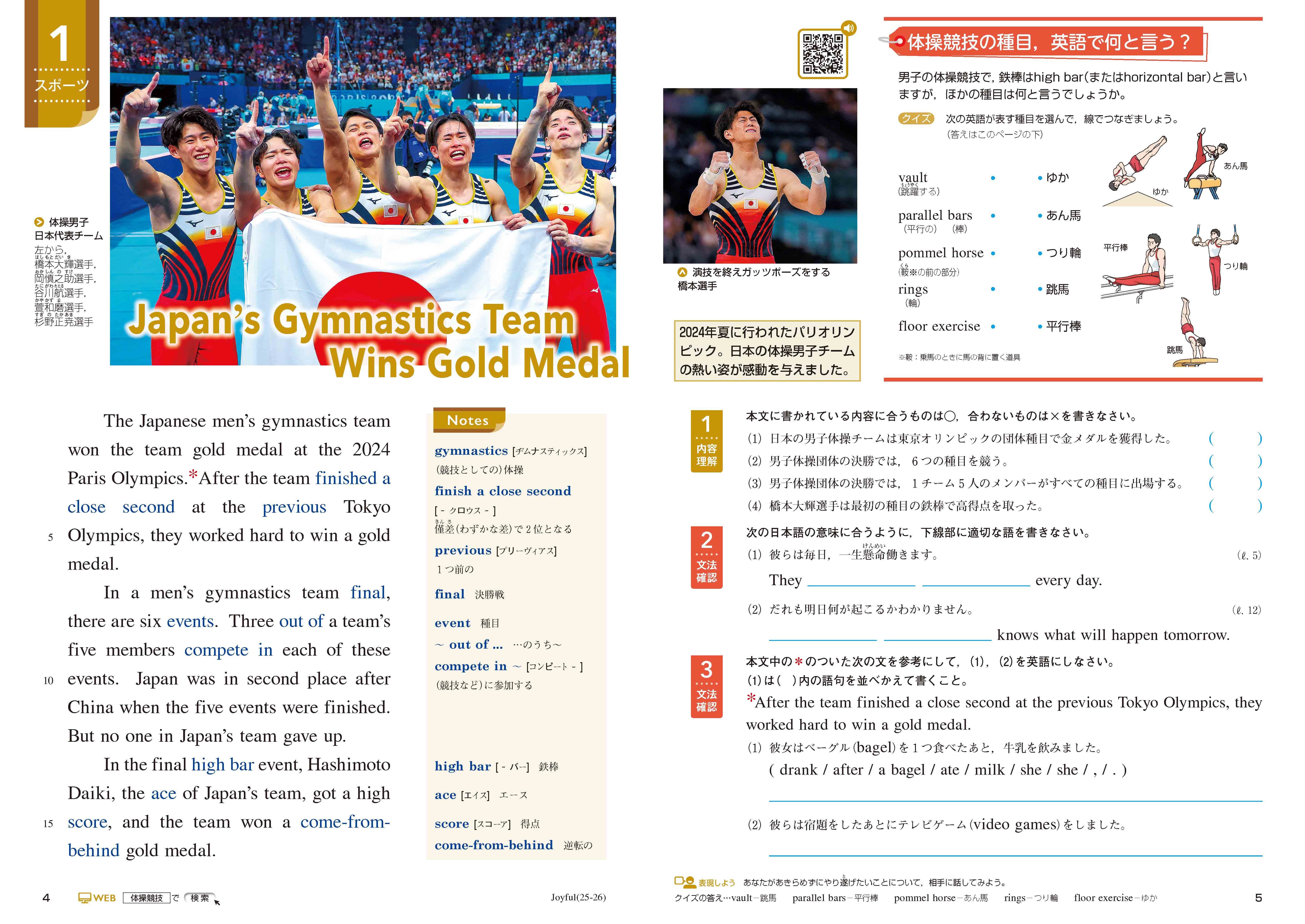 - パリ五輪の体操男子団体で日本が金メダル獲得,サッカー日本代表がW杯出場決定など,新しい話題満載!