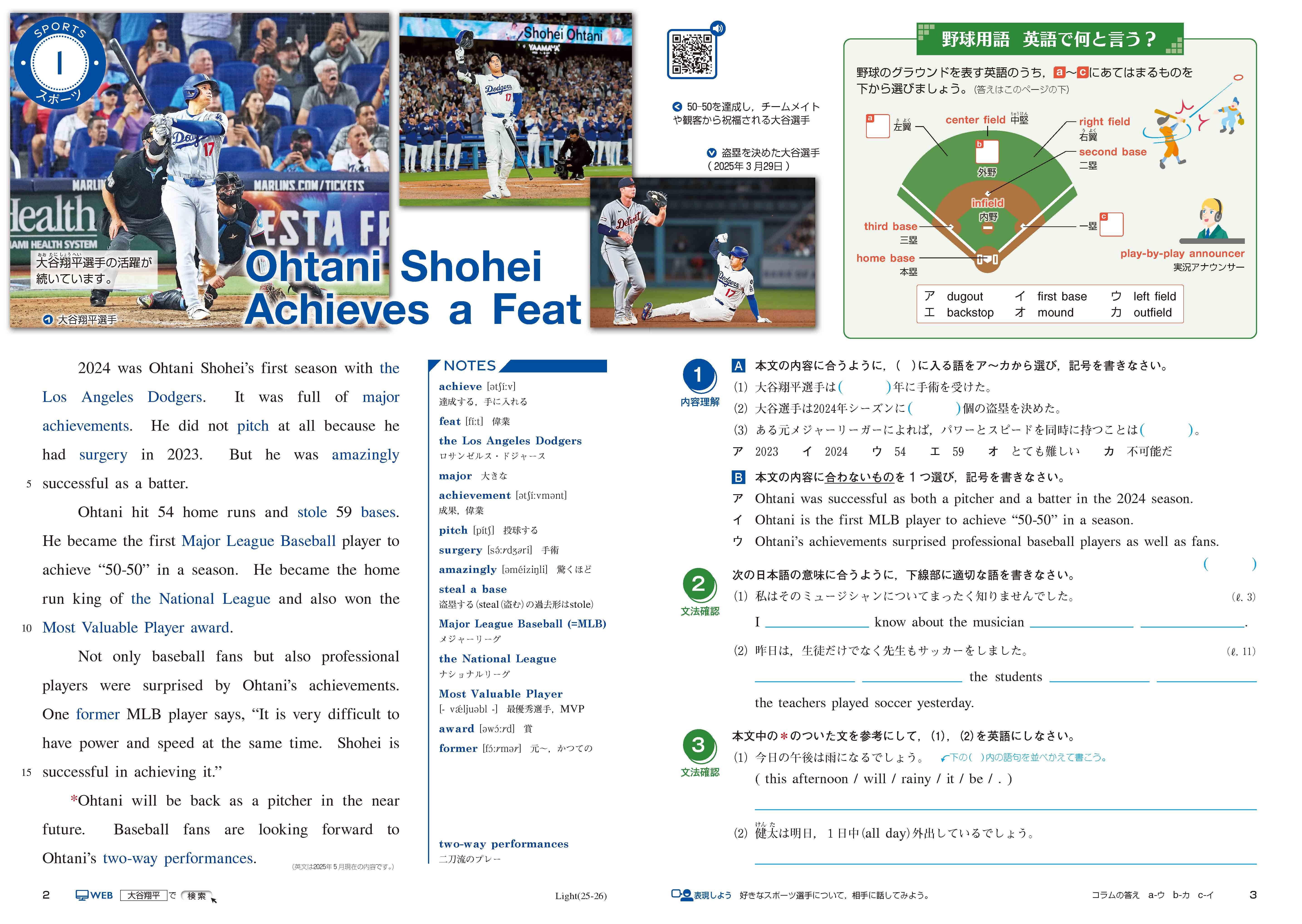 • 大谷翔平選手の活躍,パリ五輪の体操男子団体で日本が金メダル獲得など,新しい話題満載!