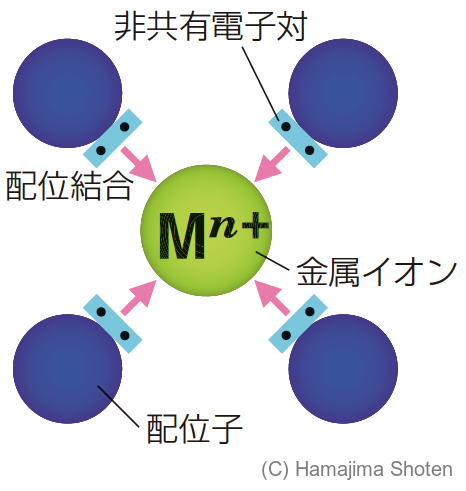 金属イオンや金属原子に配位結合する分子やイオンの数。