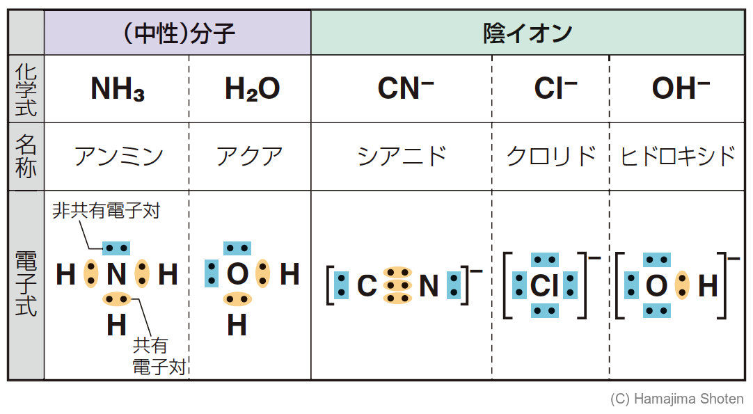 金属イオンや金属原子に配位結合する分子や陰イオン。